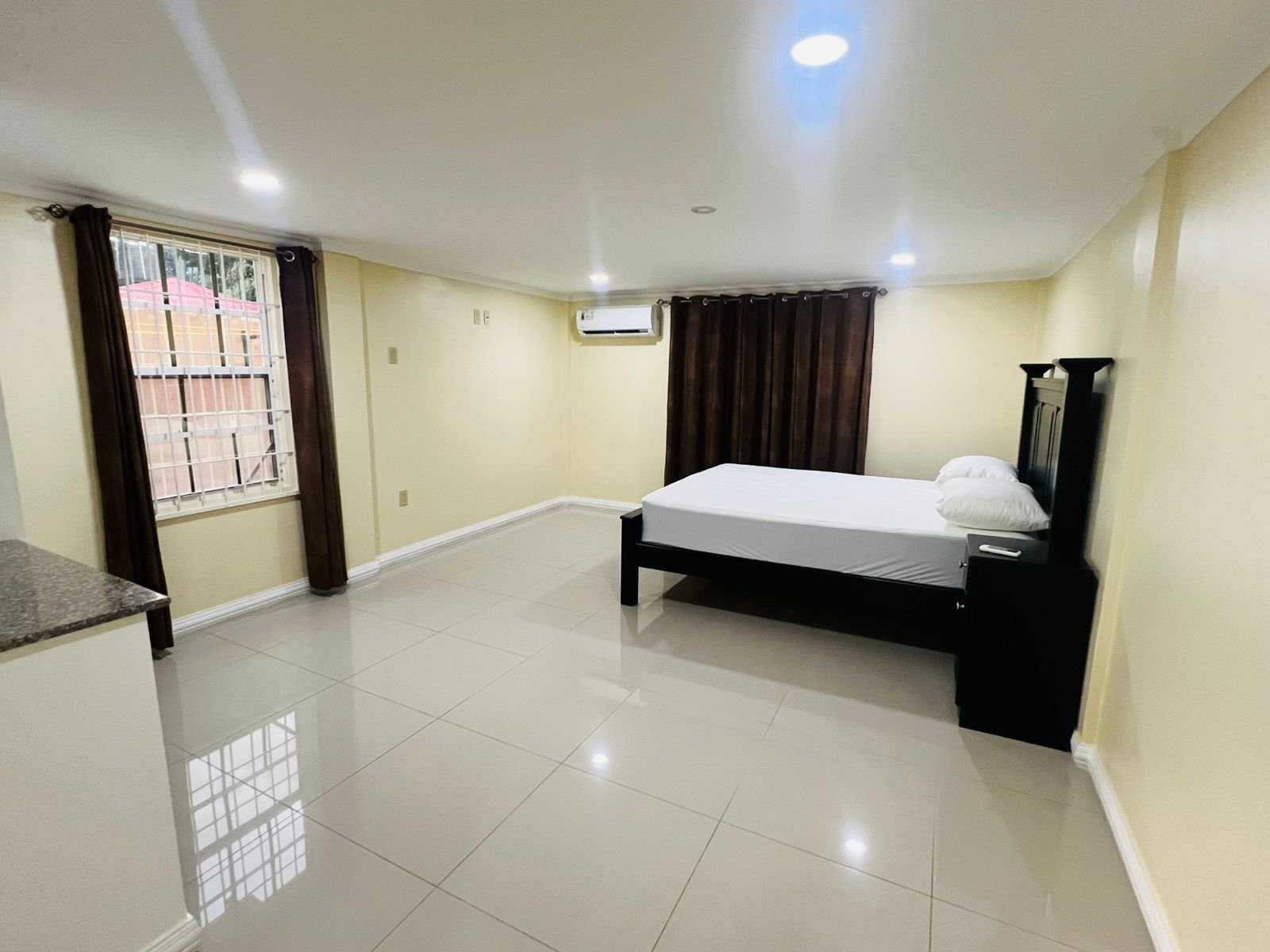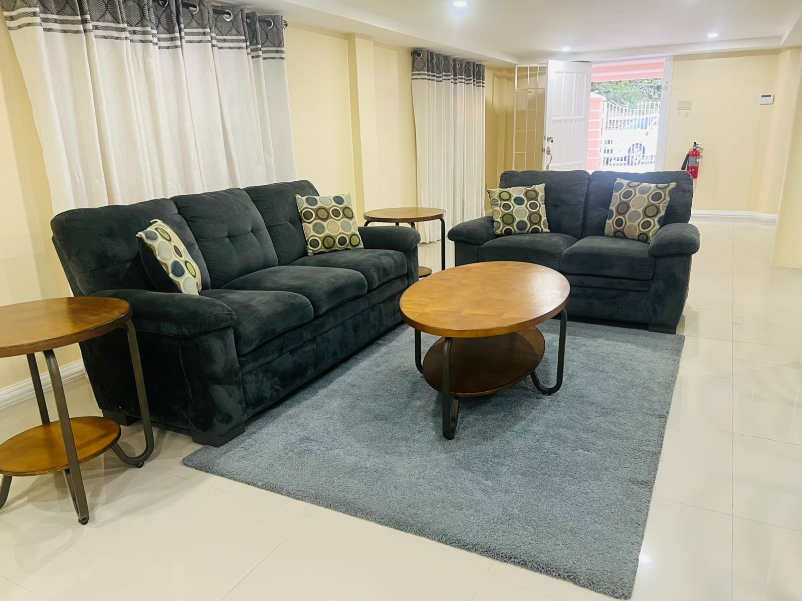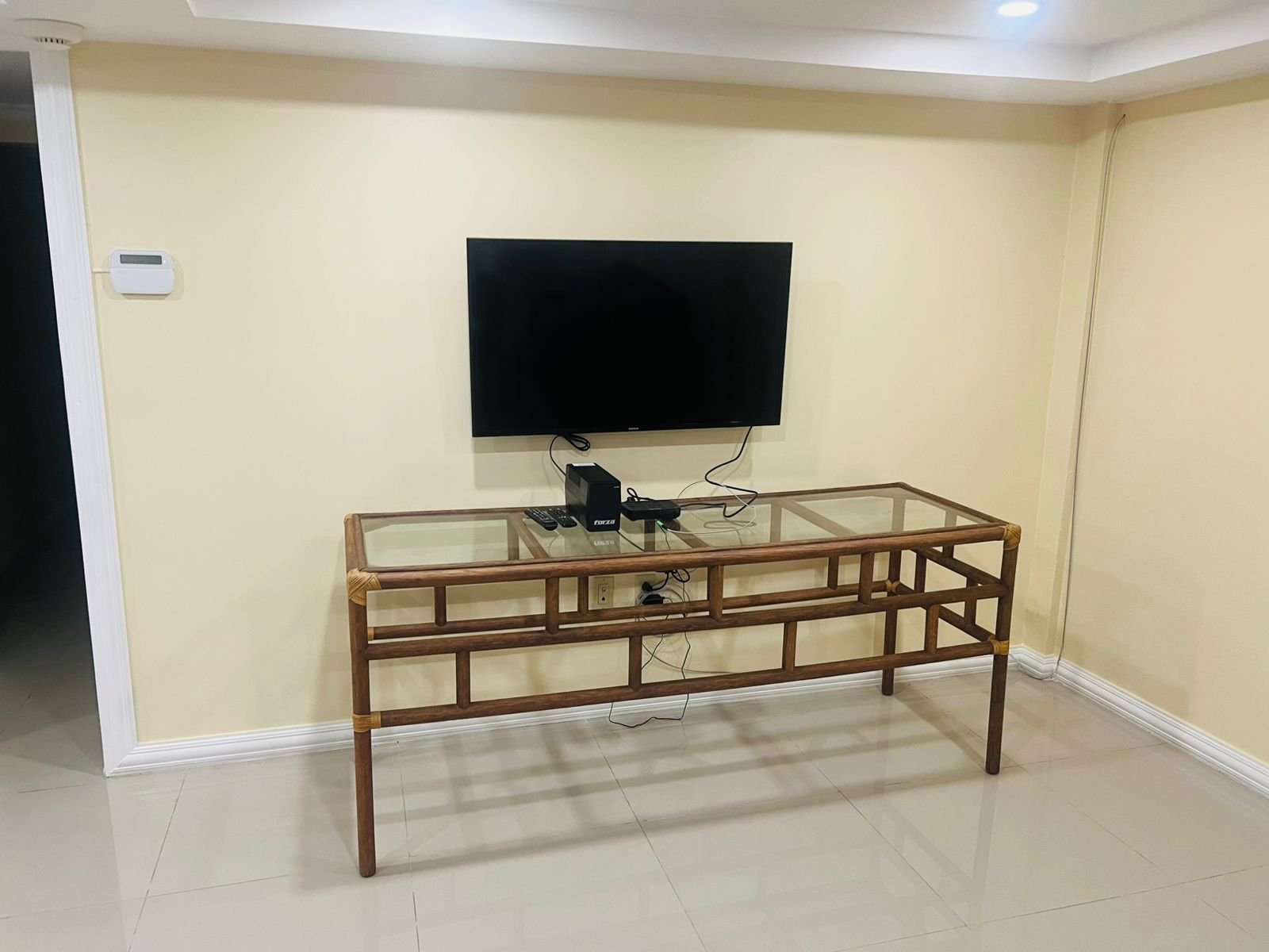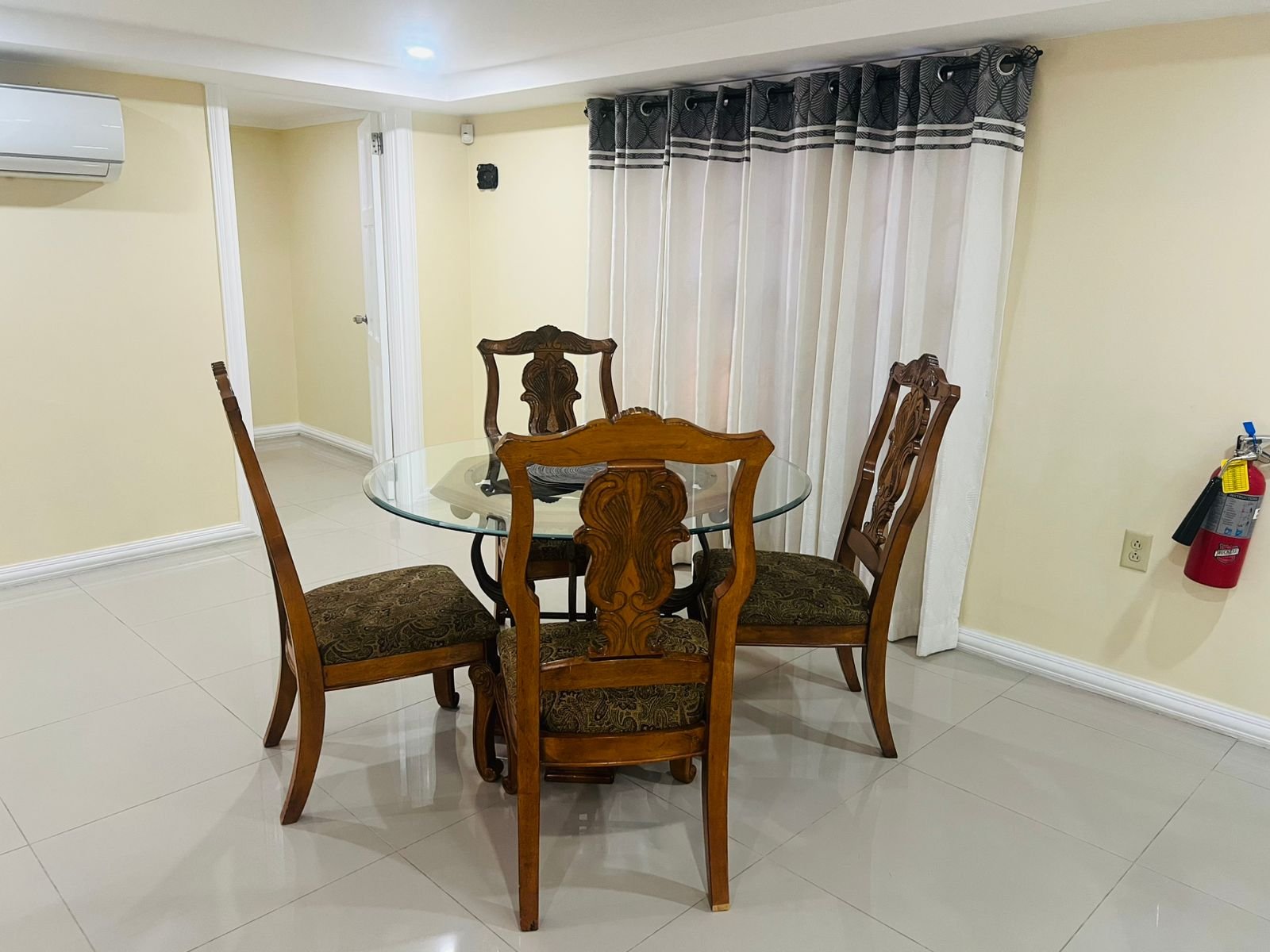 This pristine furnished apartment features an open-concept layout with premium finishes like granite countertops and ceramic floors. The living area blends a modern lounge with a fully equipped kitchen and an elegant dining set. The master bedroom offers ultimate comfort with air conditioning, a flat-screen TV, and a private vanity. Bathrooms are styled with contemporary stonework and sleek glass shower enclosures. It includes a dedicated laundry room with high-capacity appliances and integrated safety features. Recessed LED lighting and climate-controlled rooms create a sophisticated atmosphere throughout the home. This property is the perfect choice for those seeking comfort and style in a move-in-ready residence.
