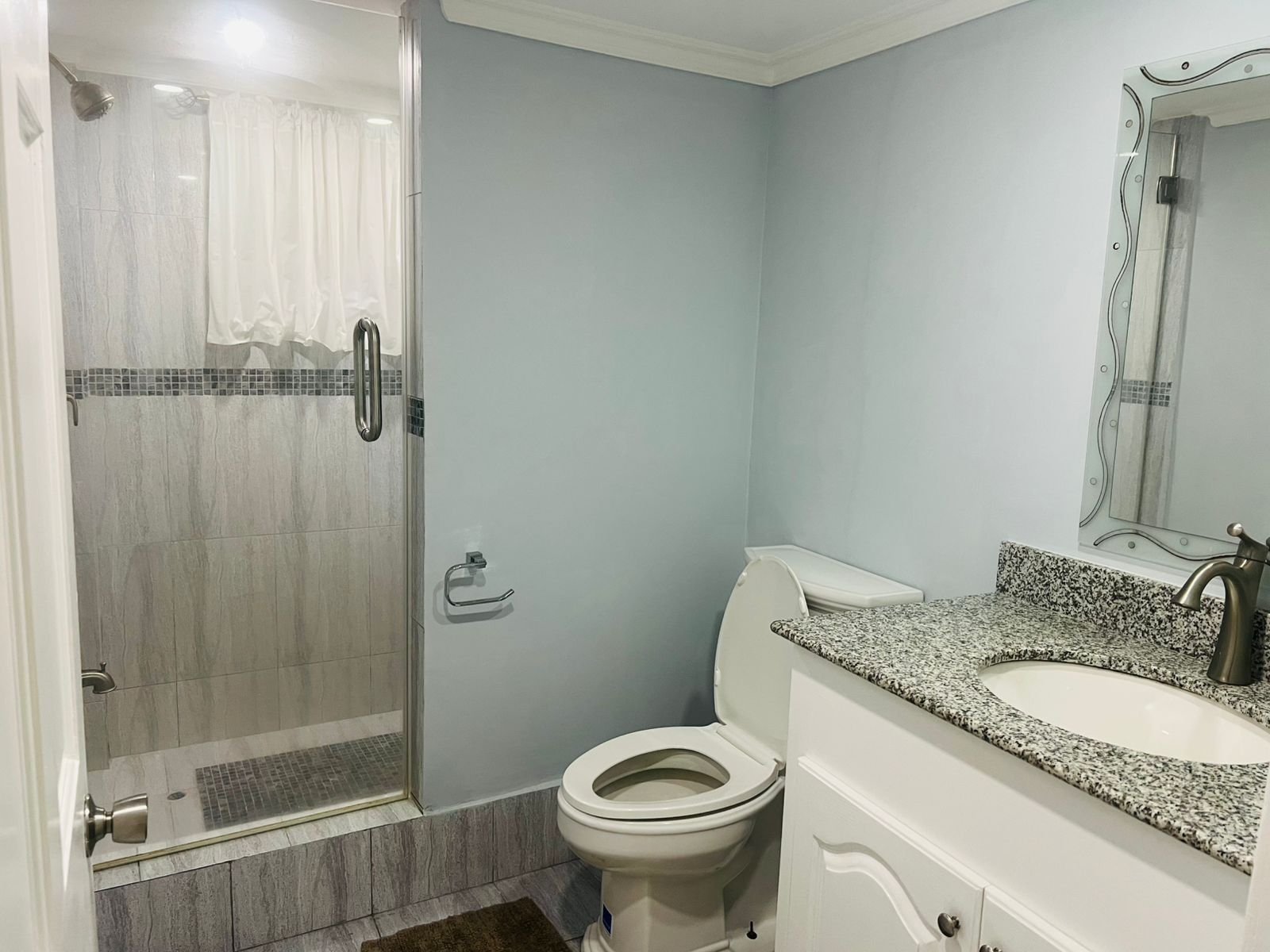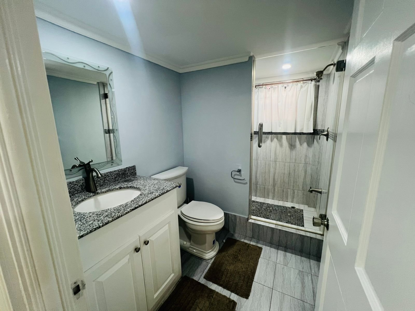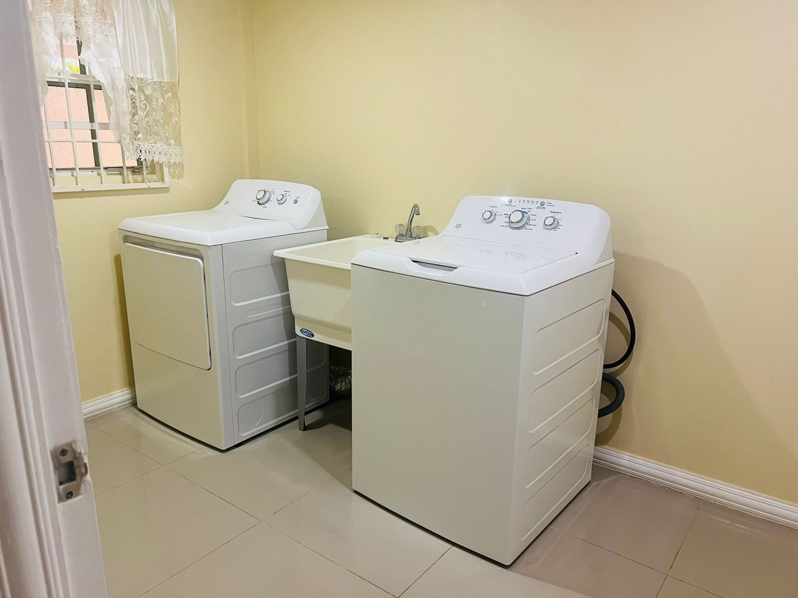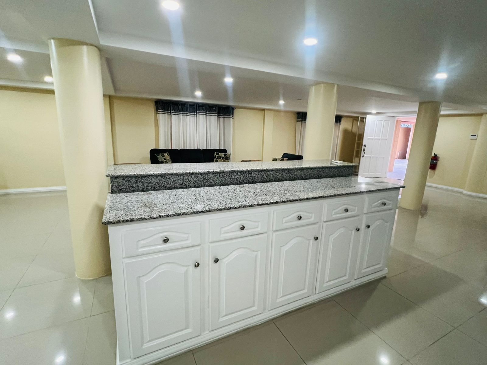 This pristine furnished apartment features an open-concept layout with premium finishes like granite countertops and ceramic floors. The living area blends a modern lounge with a fully equipped kitchen and an elegant dining set. The master bedroom offers ultimate comfort with air conditioning, a flat-screen TV, and a private vanity. Bathrooms are styled with contemporary stonework and sleek glass shower enclosures. It includes a dedicated laundry room with high-capacity appliances and integrated safety features. Recessed LED lighting and climate-controlled rooms create a sophisticated atmosphere throughout the home. This property is the perfect choice for those seeking comfort and style in a move-in-ready residence.